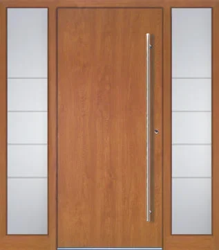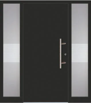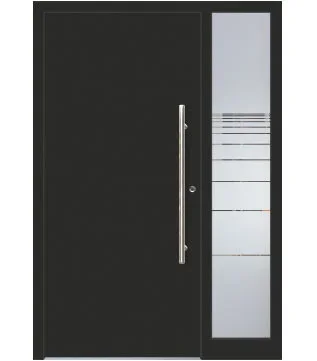 Sidelights with decorative sandblasted glass produce an eye-catching effect. The design on the glass can be customized (sandblasting).