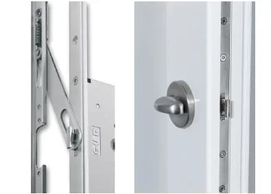 A touch sensor / handle button in combination with an electric lock in Securyespagnolettes ensure comfortable operation: doors can open freely when the pull handle is touched. When the door is closed manually or with a door closer, it is locked again.