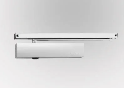 The door closer with a visually-pleasing flat bar is mounted on the door leaf and door jamb. Available in 3 colors (white / silver / bronze). The door will always close properly, and the extensive adjustment ensures adaptation to the conditions