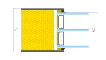 Panel cross-section with a triple glazed sealed unity for double-sided cladding.