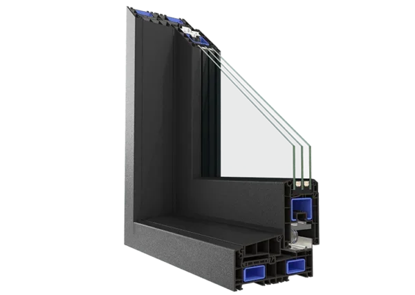 This system uses “lift-slide” technology, also called “HST”. The sashes are mounted on two rails, which allows sliding without overrun from one sash against the other.